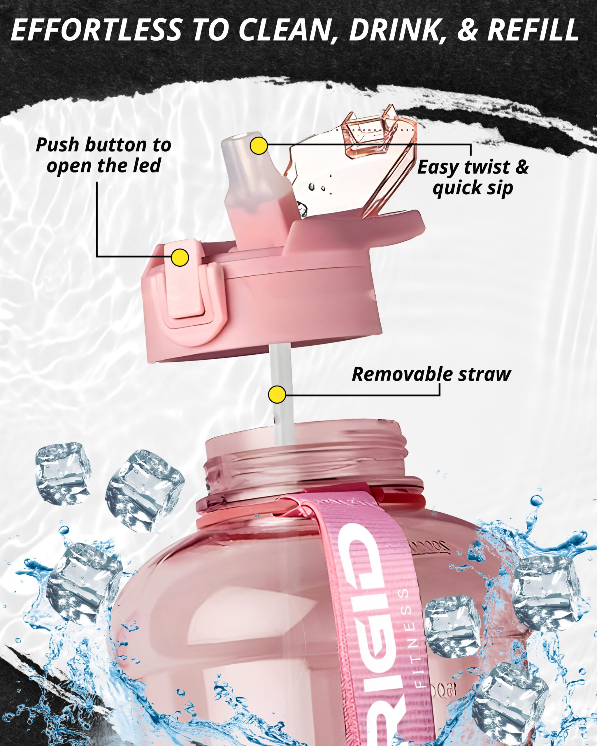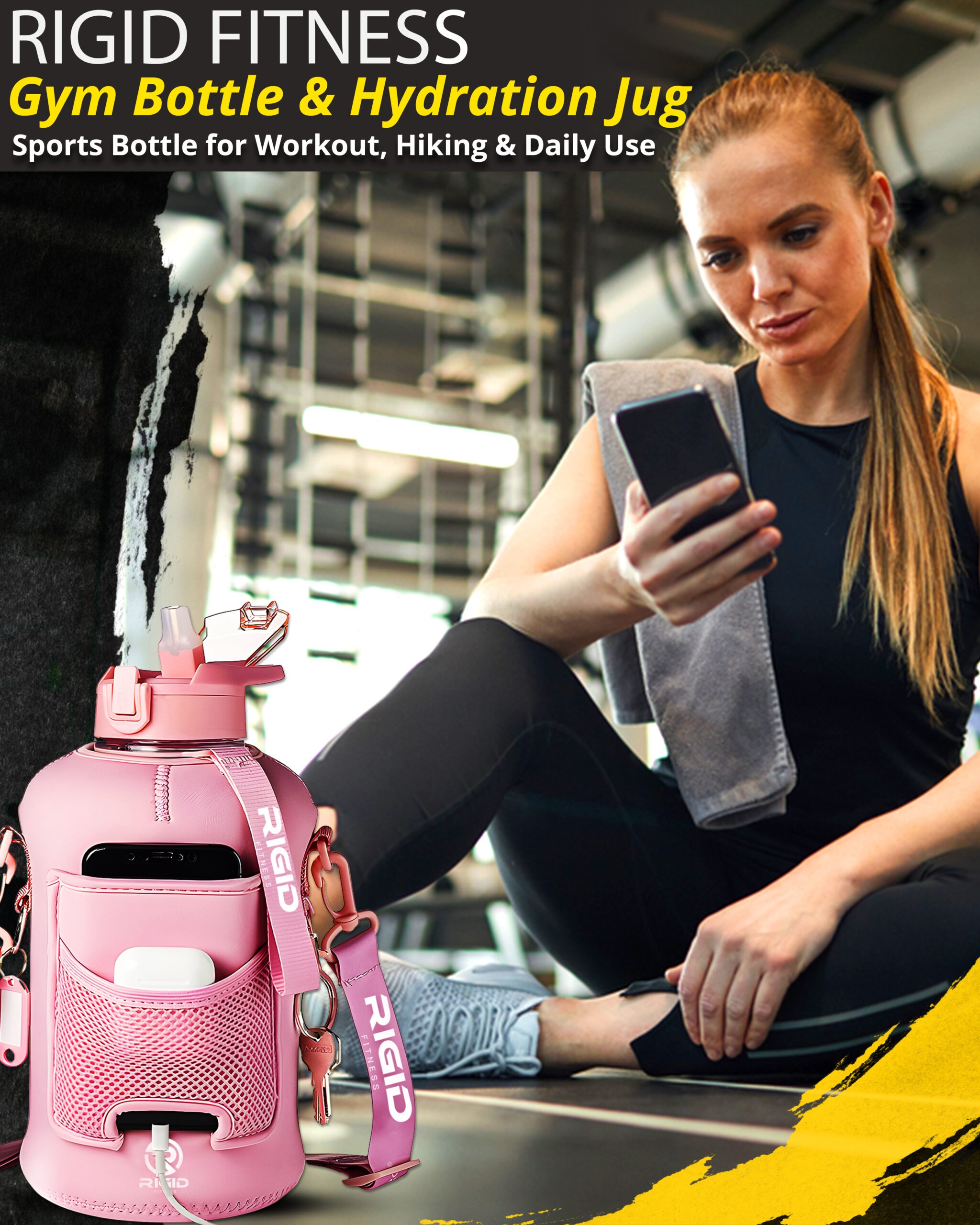 Stay stylish and fully fueled throughout your day with the RIGID FITNESS Pink Gym Bottle & Hydration Jug – the perfect fusion of hydration, function, and fashion for active women on the go