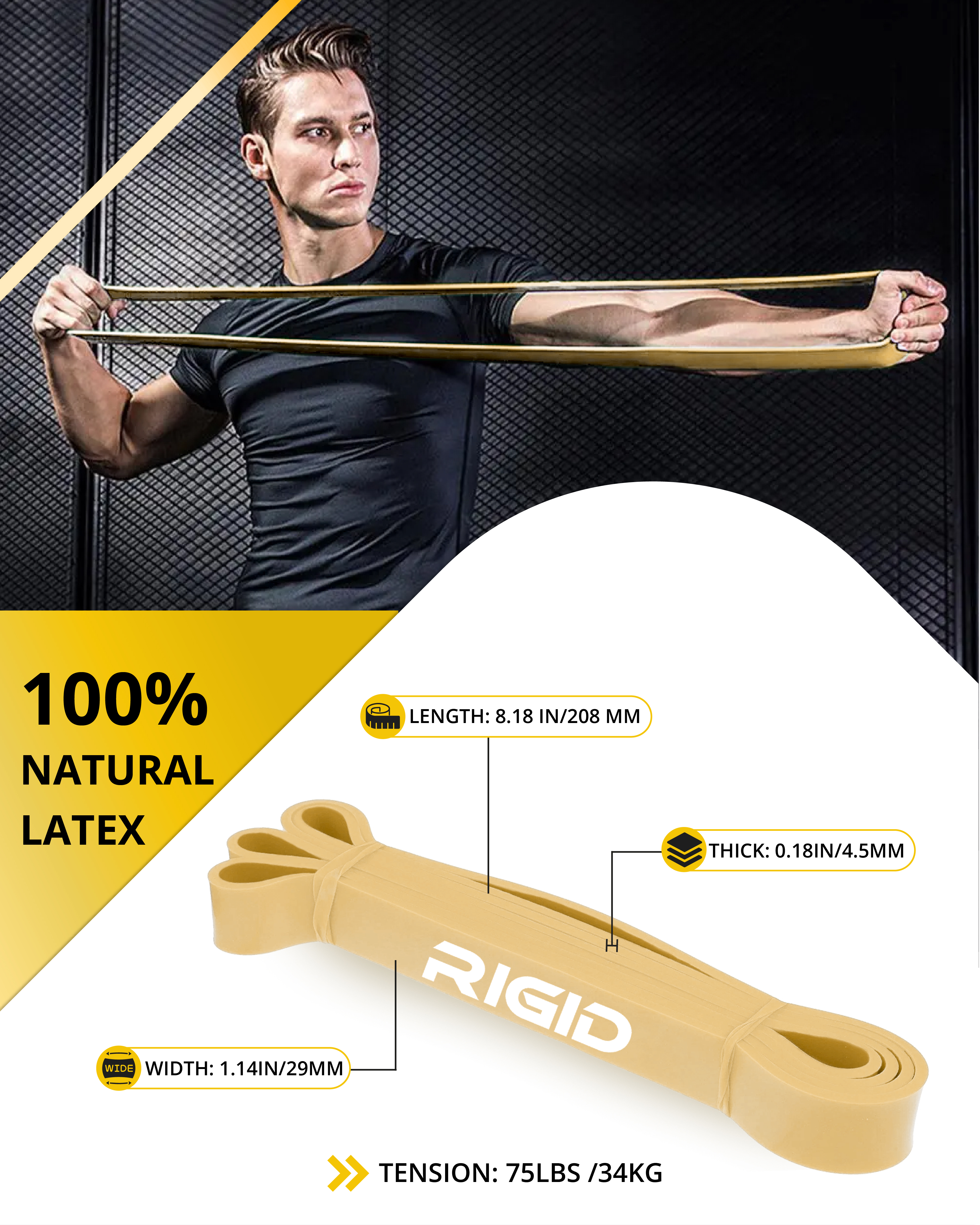 Take your fitness journey to the next level with the RIGID FITNESS Gold Resistance Band -designed for powerful performance and effortless transport.