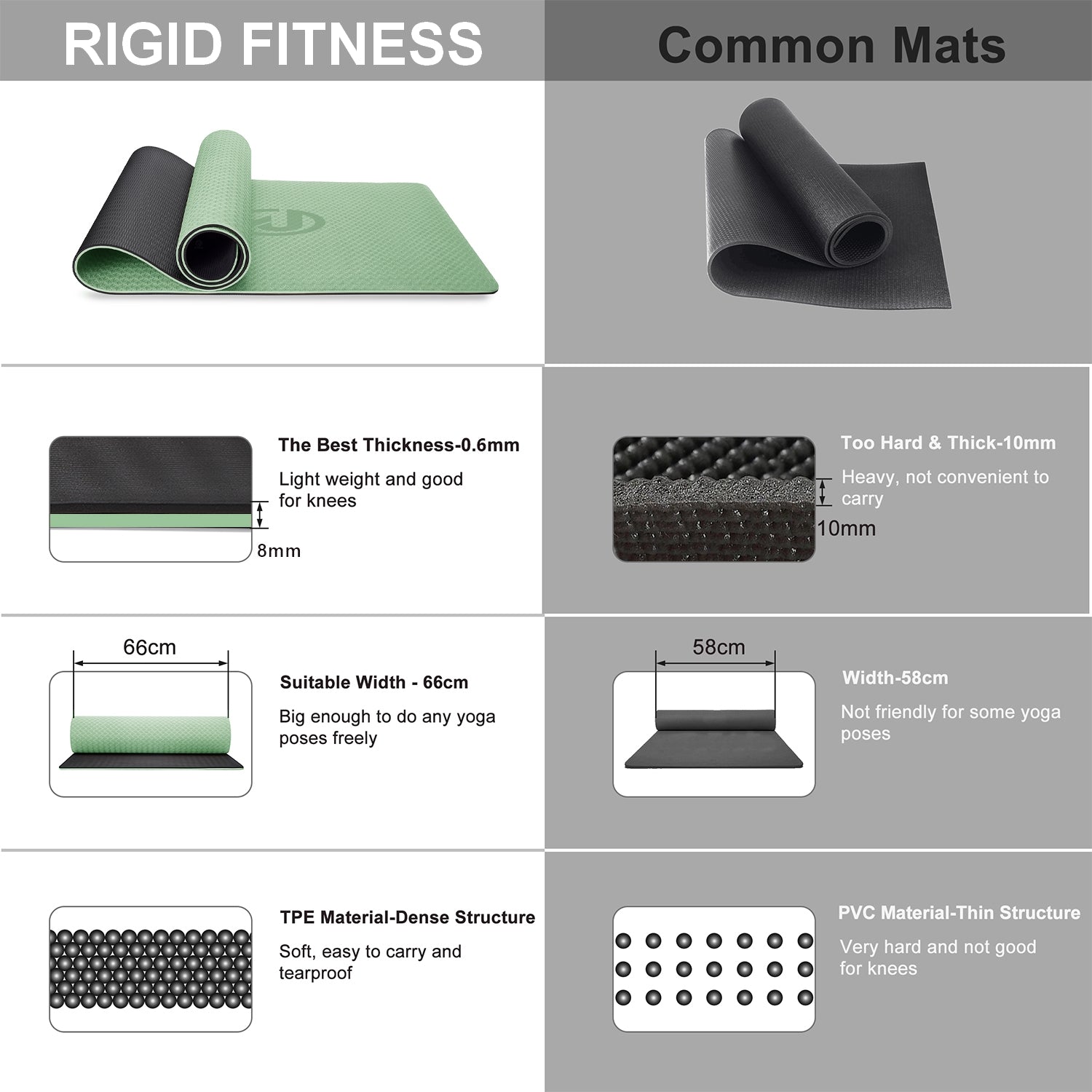 Why Choose RIGID FITNESS? Eco-Conscious Material – Made from 100% TPE, this BPA-free yoga mat is recyclable, latex-free, and safe for the environment. Ideal for those who want a sustainable, stylish option.