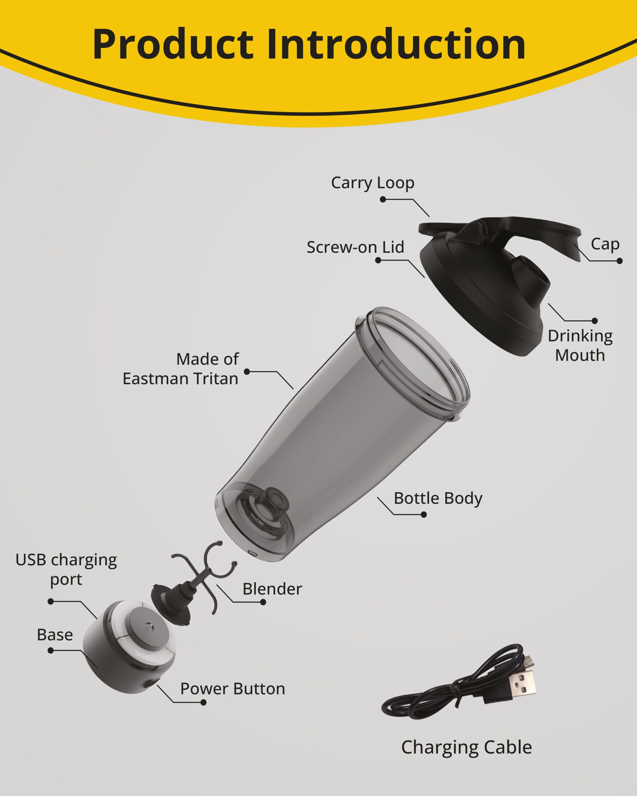 🔋 [USB Rechargeable Power] The USB protein shaker bottle charges via USB, making it easy to use anywhere-home, gym, office, or travel. No need for battery replacements.