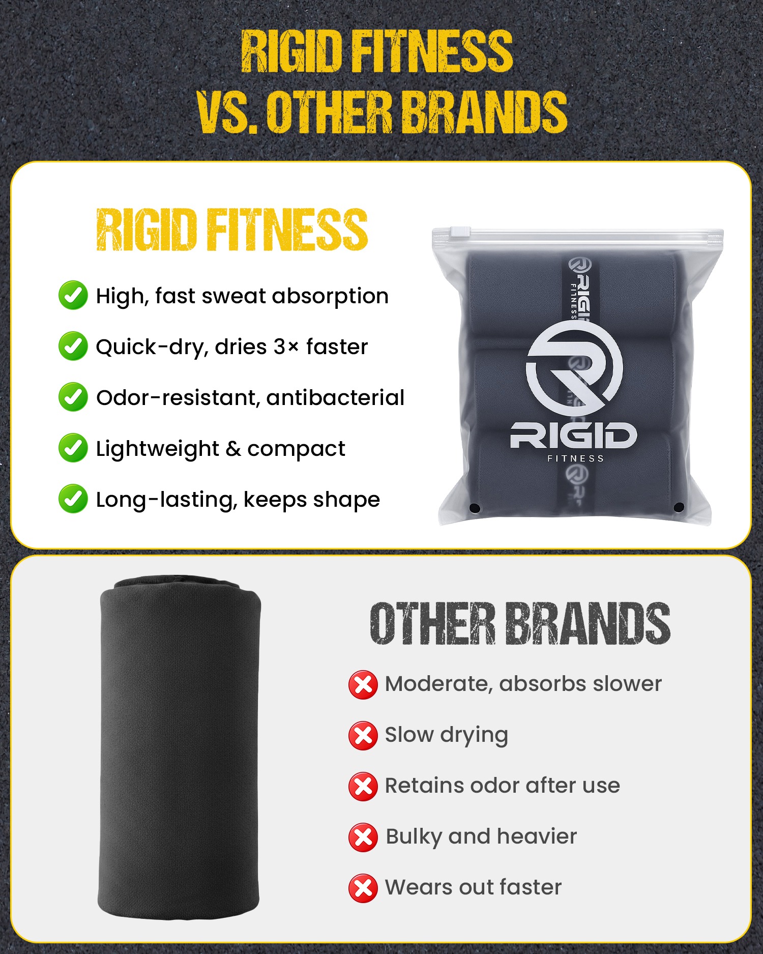 Engineered for high-performance training, RIGID FITNESS microfiber towels feature high-density fibers that instantly wick sweat and dry 3x faster than cotton. These lightweight, odor-resistant towels prevent bacterial buildup and maintain softness wash after wash, offering the perfect hygienic solution for gym sessions, hot yoga, and outdoor sports.