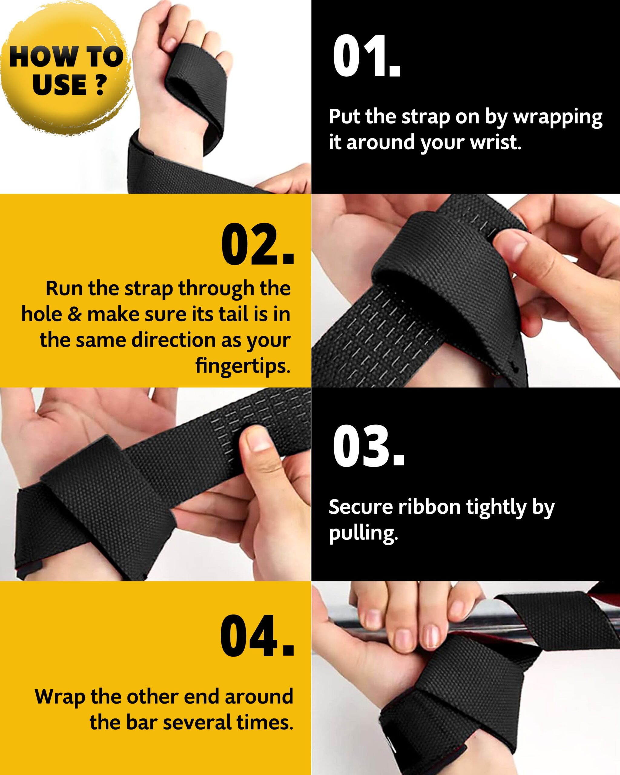 Quickly wrap the straps around barbells, dumbbells, pull-up bars, or cable handles to instantly boost grip and control. Whether you train at the gym, at home, or outdoors, these straps are your must-have lifting companion.