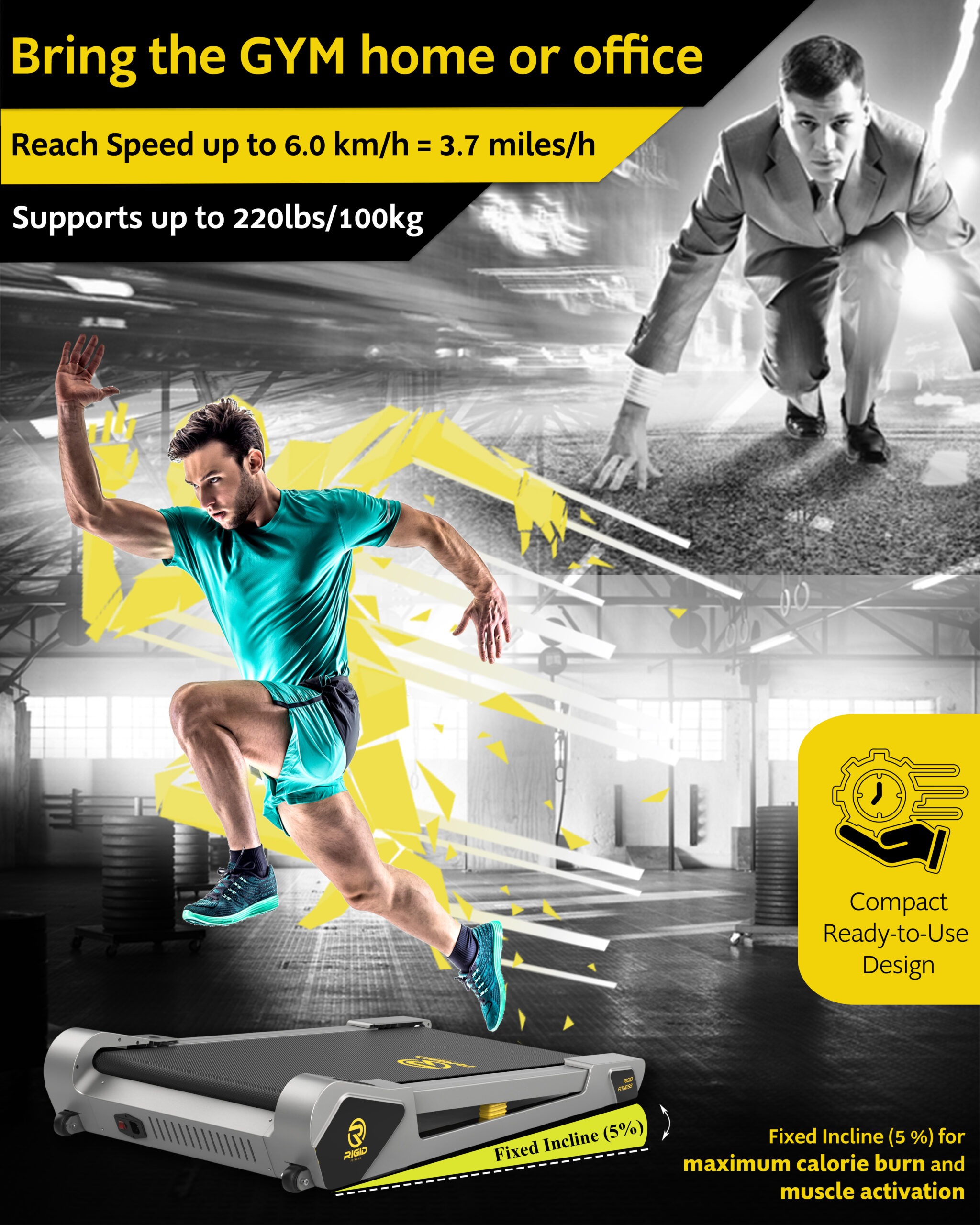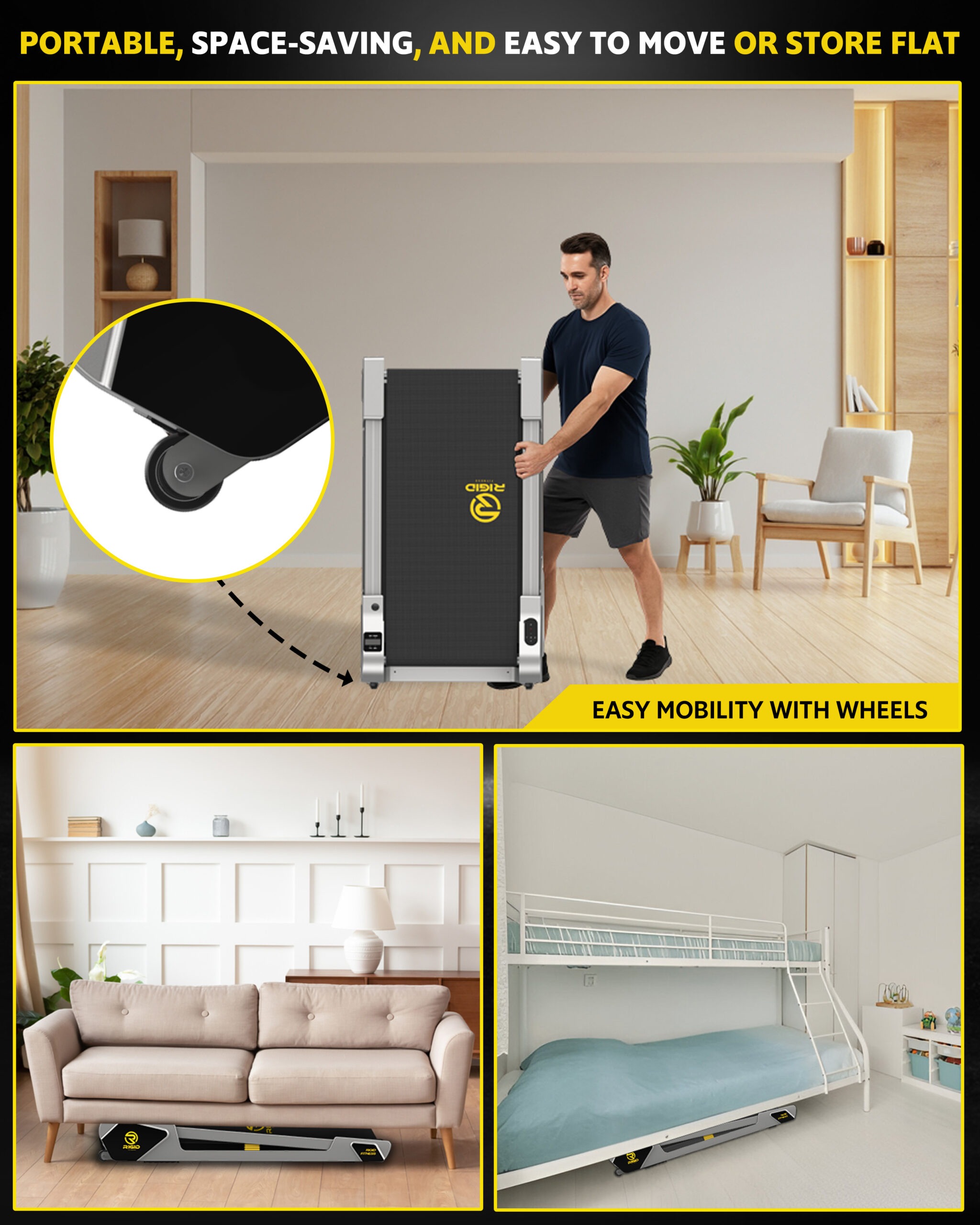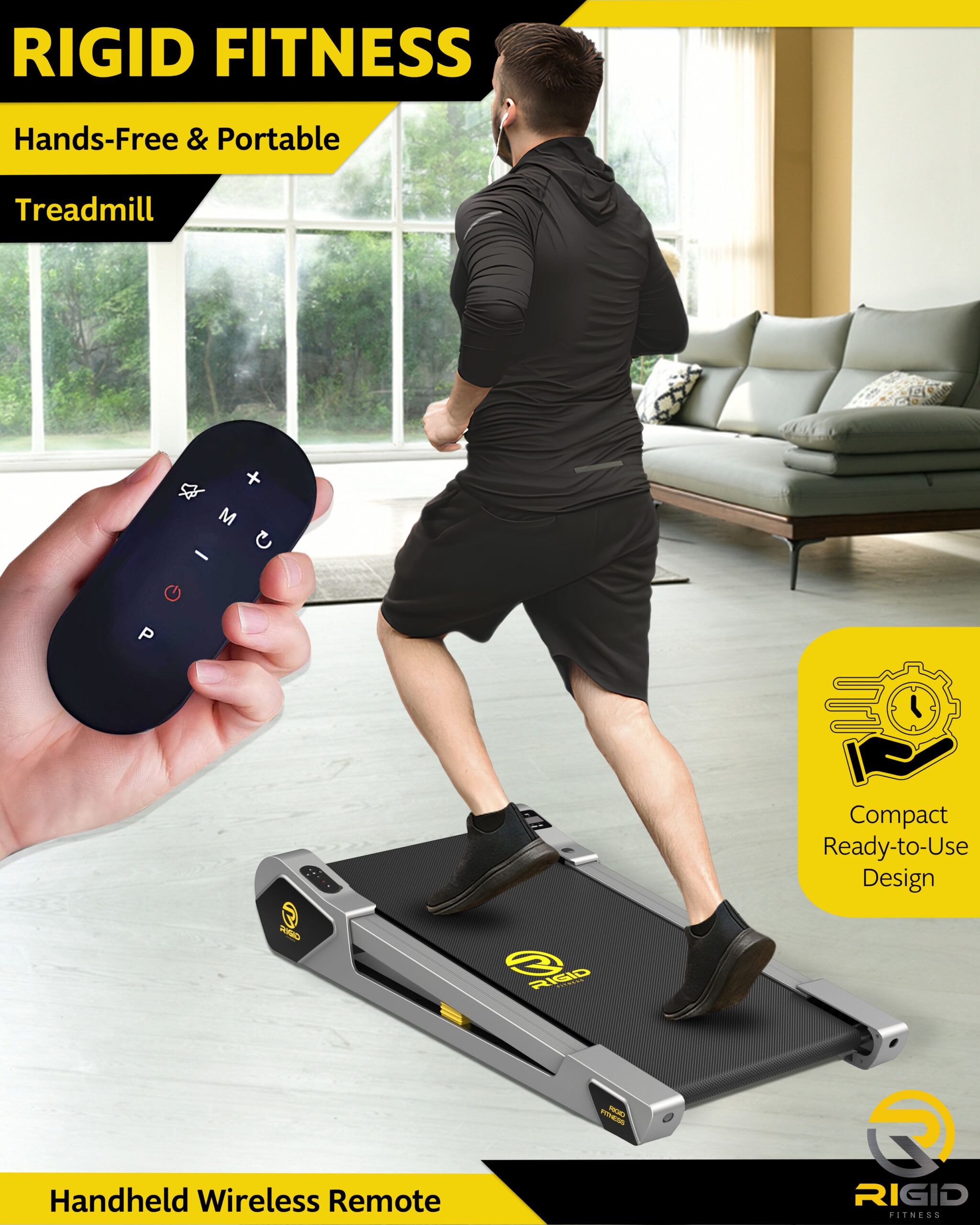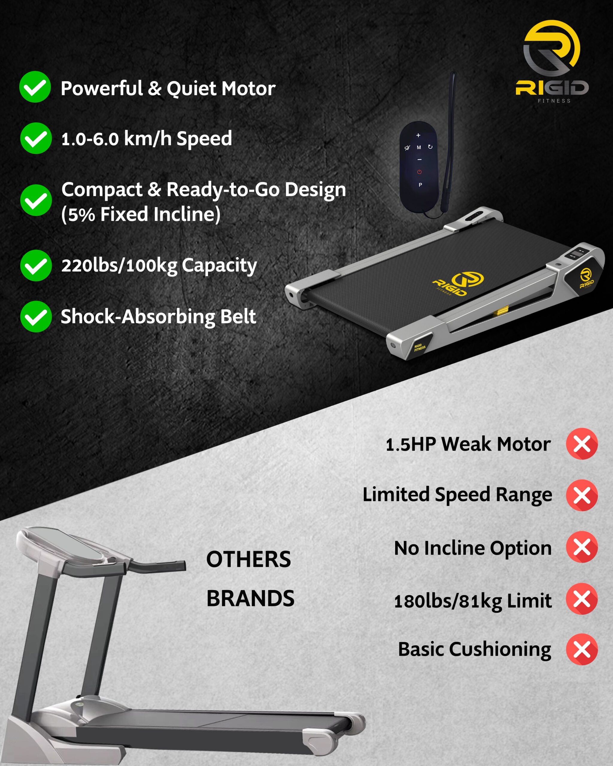 🏠 【Compact & Space-Saving Design】: The RIGID FITNESS Walking Pad Treadmill is engineered for modern living. Its solid, fold-free design allows for effortless storage under a bed, sofa, or upright against a wall. Perfect for small apartments and tight office spaces, letting you stay active without clutter.