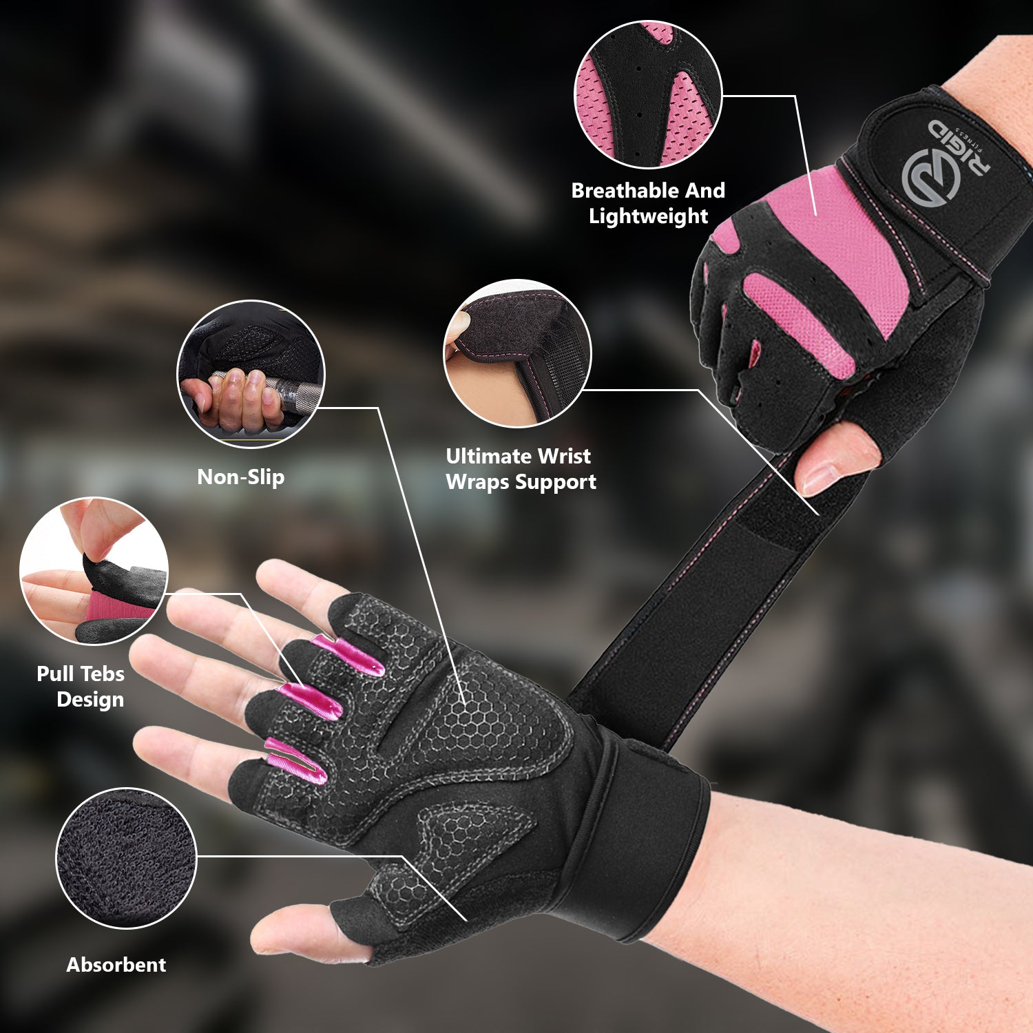 RIGID FITNESS Women Workout Gloves with Wrist Support